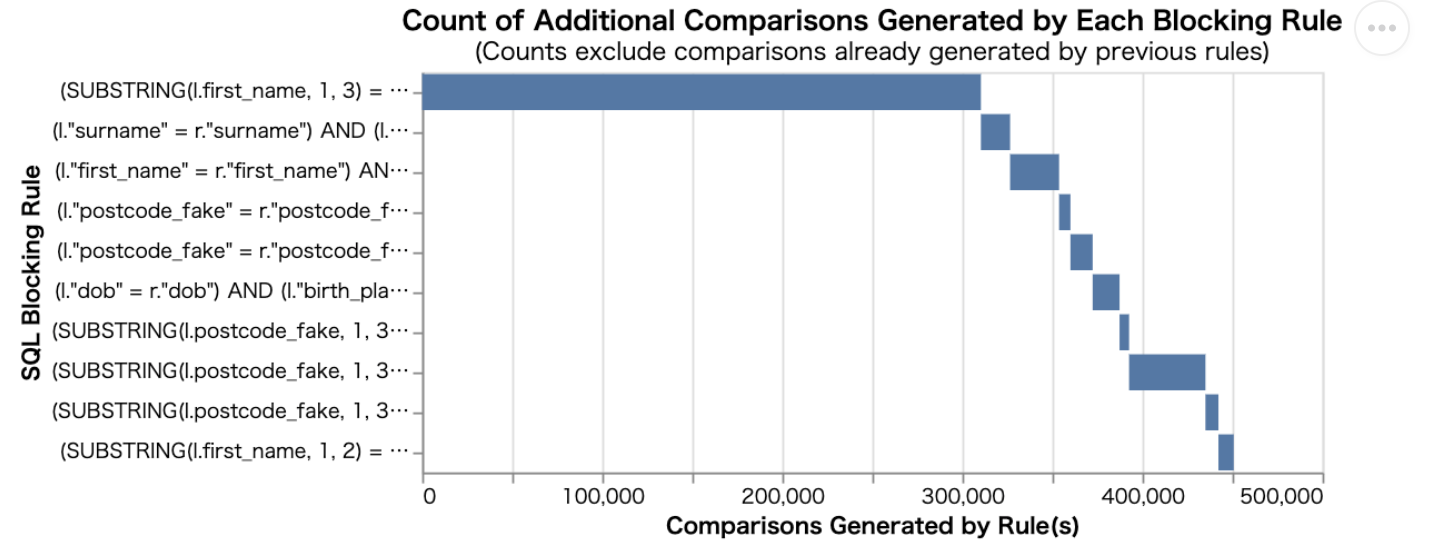 このため、ブロッキングルールを重ねがけすると、最終的に残るレコード数は一致する。