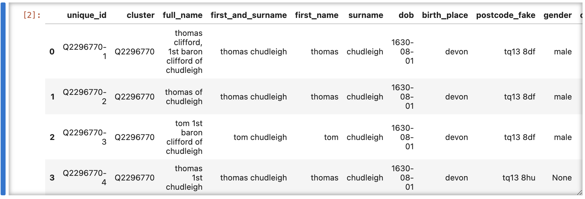 Splink では、リンクする前にデータをクリーンアップし、行に一意の ID を割り当てる必要があります。このセクションでは、Splink にデータをロードする前に必要な追加のデータクリーニング手順について説明します。